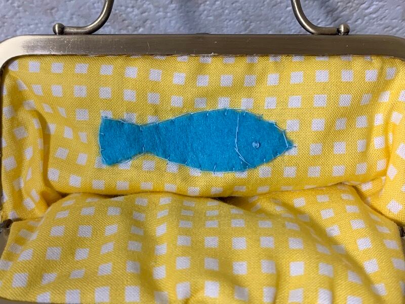 中のモチーフは 青:サカナ、食べちゃった 黄色:たまごからヒヨコがかえった